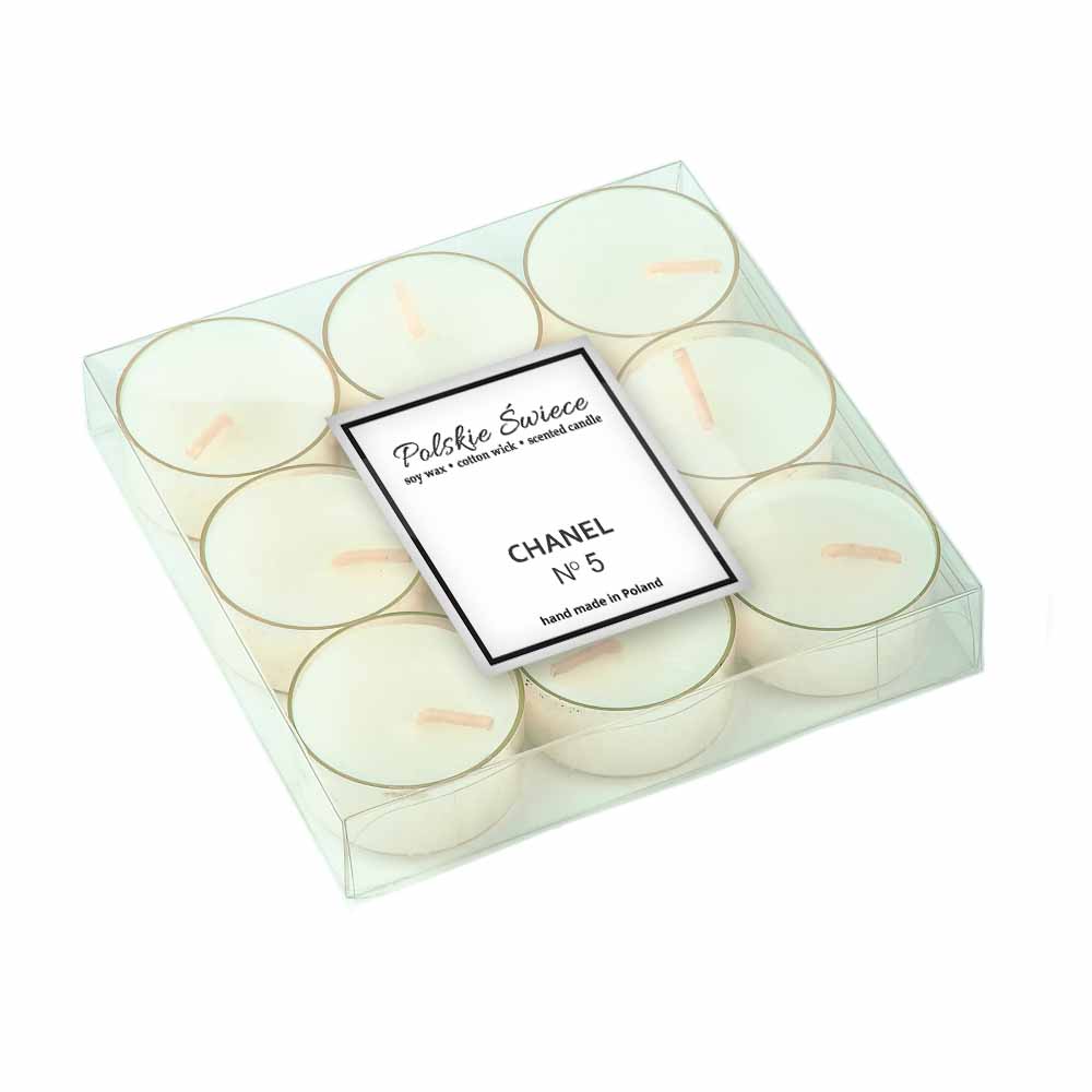 Podgrzewacze sojowe (tea-light) zapachowe. Seria scented w przeźroczystych naczyniach.