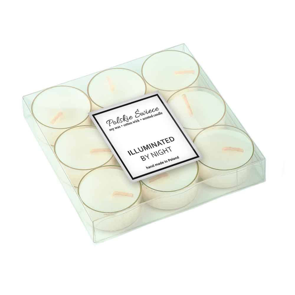Podgrzewacze sojowe (tea-light) zapachowe. Seria scented w przeźroczystych naczyniach.